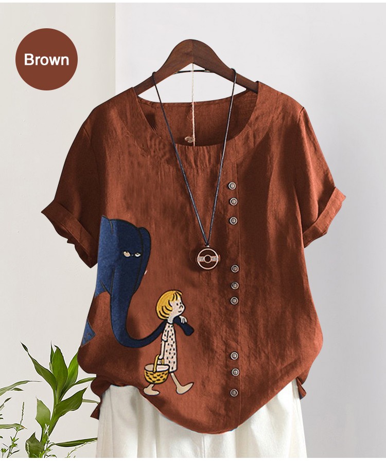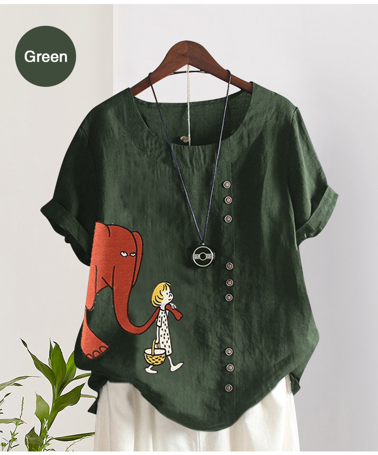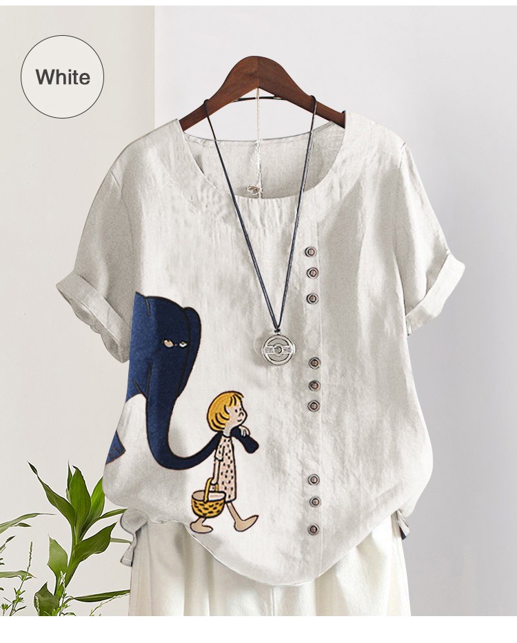 Cartoon Elephant Printed Short Sleeve Shirt